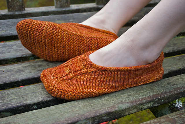 Andrea Rangel's Dinar slipper pattern was designed with DK Lively in mind. Andrea's choice of Rick's Cognac is perfect. If you'd like to pick up a hard copy pattern for Dinar, we have those in stock.