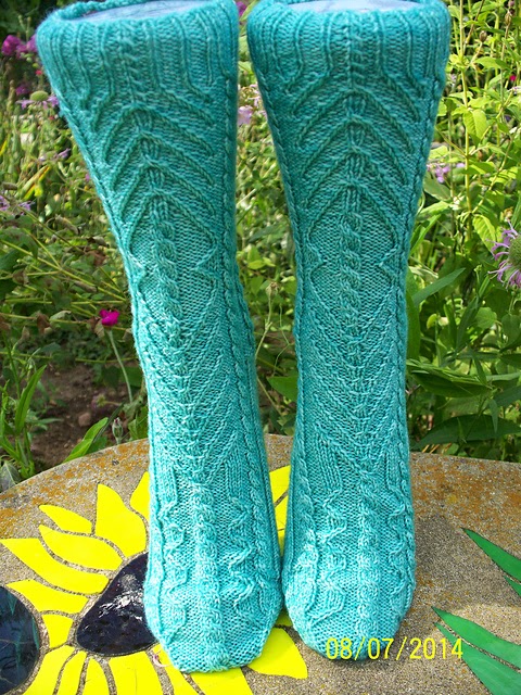 And finally, Lisa (ravname: knitsocks) knit these delightful He-He-Ha Socks by Pata Tocchin in Piquant Lite in Tropical Sunset. I'm not sure how I'd personally feel about knitting beetles on my socks but the result certainly is attractive.