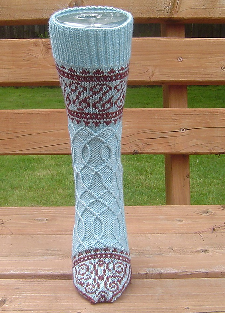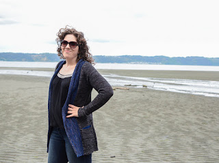 And finally, the lovely Dawn (ravname: dawn76) knit herself an awesome postgrad sweater by Alicia Plummer in Cadence Quill and Jay Blue. Dawn's photos are always great and you should check out herRavelry page for more fun shots of this and other sweaters.
