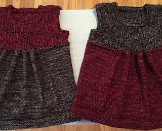 Speaking of stylish children! Theresa (ravelry name: hrvdmnky) knit two adorable coordinating Belle Isle dresses by Heidi Atwood-Reeves in Vamp and Sassafras. I can't decide which colour arrangement I prefer.