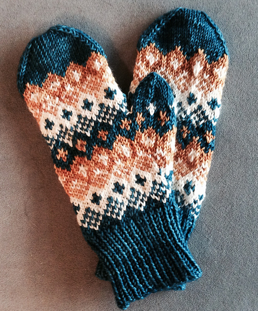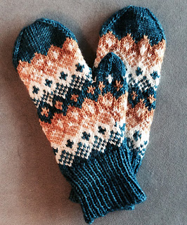 Nancy (ravname: NorthernFlicker) knit up this awesome pair of Lindgren mittens by Karie Westermann in Lively DK in Nekkid, Hoppy Blonde and Splish Splash. And if that weren't enough she knit up a gorgeous Astrid hat to match. Someone is going to be coordinated and cozy next Winter!