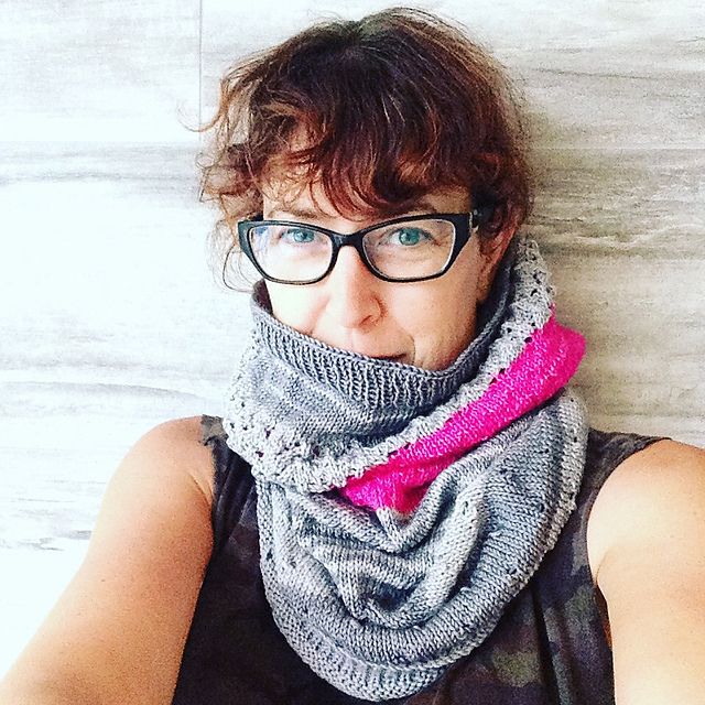 My first project is the 3 Colour Cashmere Cowl by Jojo Locatelli. This is probably one of the most popular patterns on Ravelry this year and with good reason. It's a fun and interesting knit. And in the round, it works up pretty fast. I couldn't wait to get to that pop of pink. For mine, I opted to forego the cashmere and used Artisan sock in Reflection, Silhouette and Totally Pink. I love, love, love this cowl. It is super long, so when you put it on it just bunches up perfectly in a way I can never perfect with a scarf or infinity cowl. Hmm...I just bought a new red coat, maybe I need to make another one of these with a pop of Ruby Love!