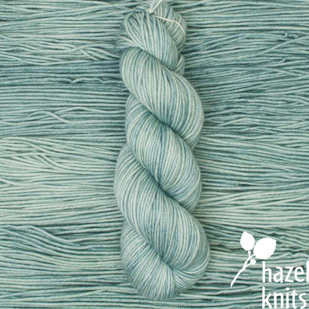 We will begin shipping our "featured color" in this base on September 10, 2014. All items in one order (both in stock and featured color) will ship together. If you have a dye-to-order product, please allow an extra 14 days production time. If you need part of your order sent sooner, either order separately or conact us for assistance.Frosty green-blue and steely blue layers.